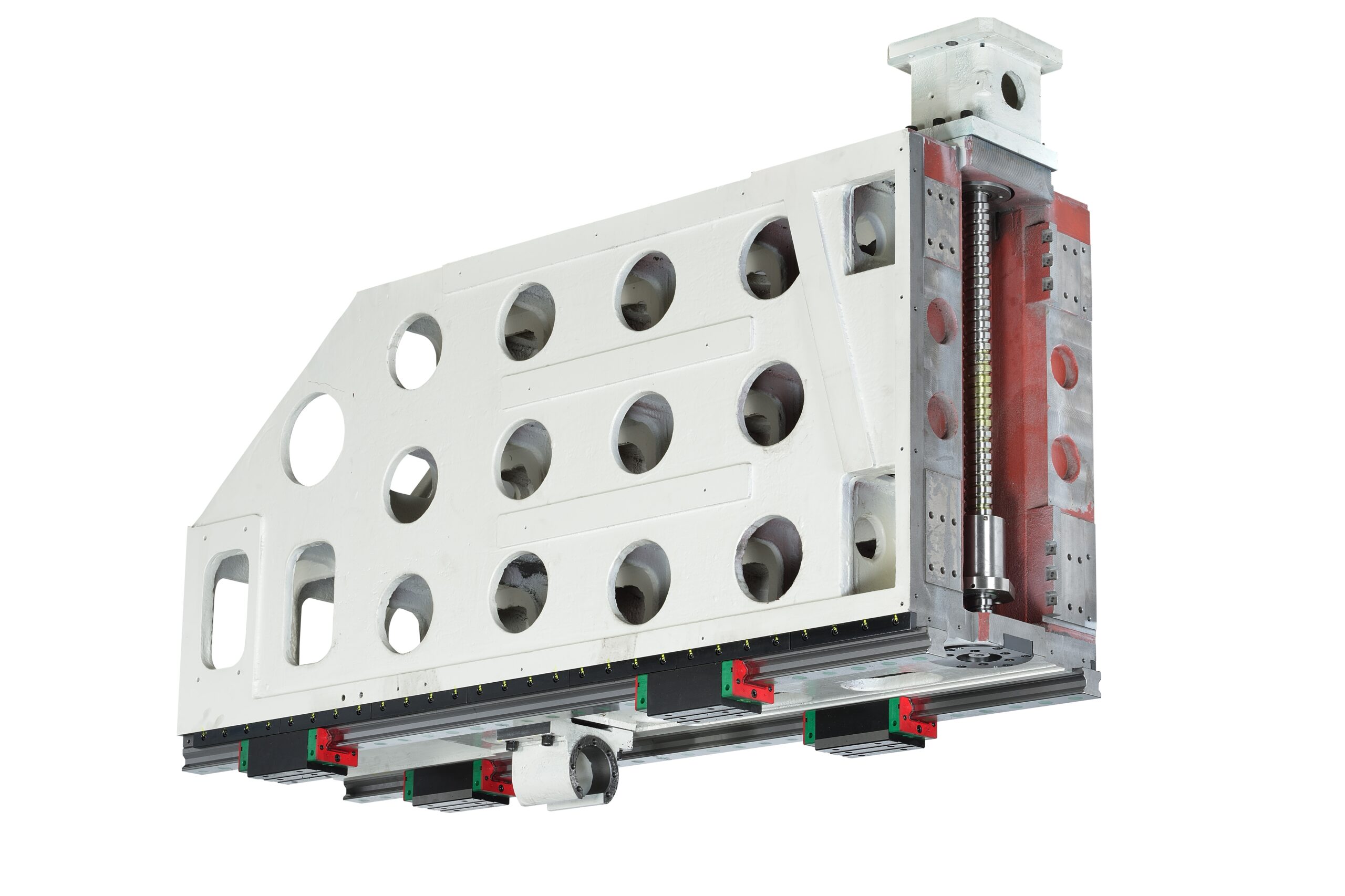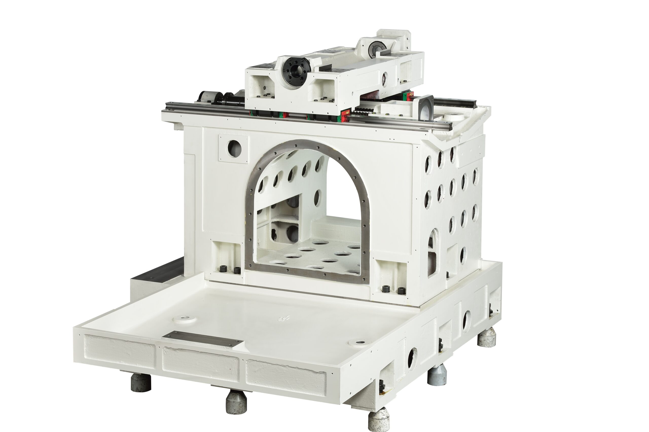 - Tuhá konstrukce stroje, strukturální díly jsou z litiny