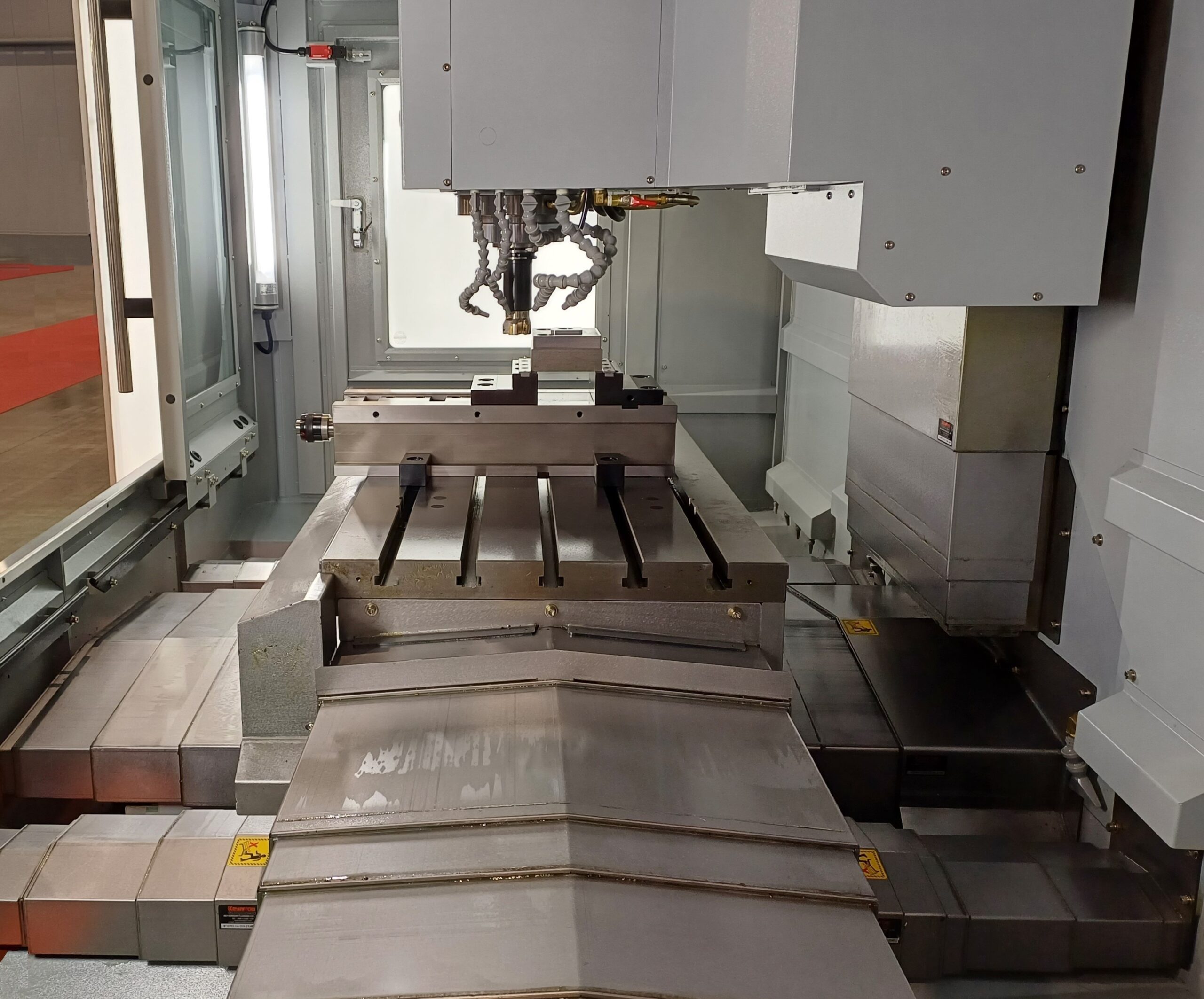 Vertikální CNC obráběcí centrum s posuvným stolem a pevným stojanem – konstrukční koncepce „C“. Pracovní stůl se pohybuje v podélném směru (osa X) na křížovém suportu. Křížový suport se pohybuje na základně v příčném směru (osa Y). Všechny 3 lineární osy jsou osazeny válečkovým lineárním vedením a pohyb na jednotlivých osách je zajištěn pomocí předepnutých kuličkových šroubů. Tím je zajištěna vysoká tuhost, rychlost a přesnost polohování. Moderní krytování pracovního prostoru se střechou zabraňuje únikům řezné kapaliny. Pracovní prostor má velmi dobré ergonomické provedení.